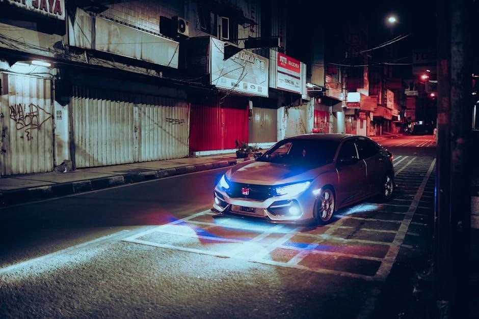 The 2010 Honda Accord manual doesn’t explicitly detail advanced driving techniques‚ but emphasizes safe operation. It stresses the importance of smooth acceleration and braking for optimal fuel efficiency and passenger comfort. Drivers are advised to maintain a safe following distance and adjust speed according to road and weather conditions.